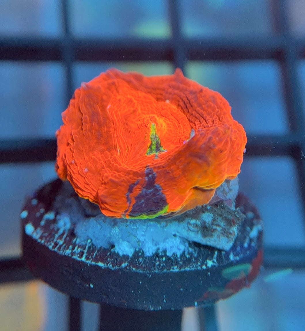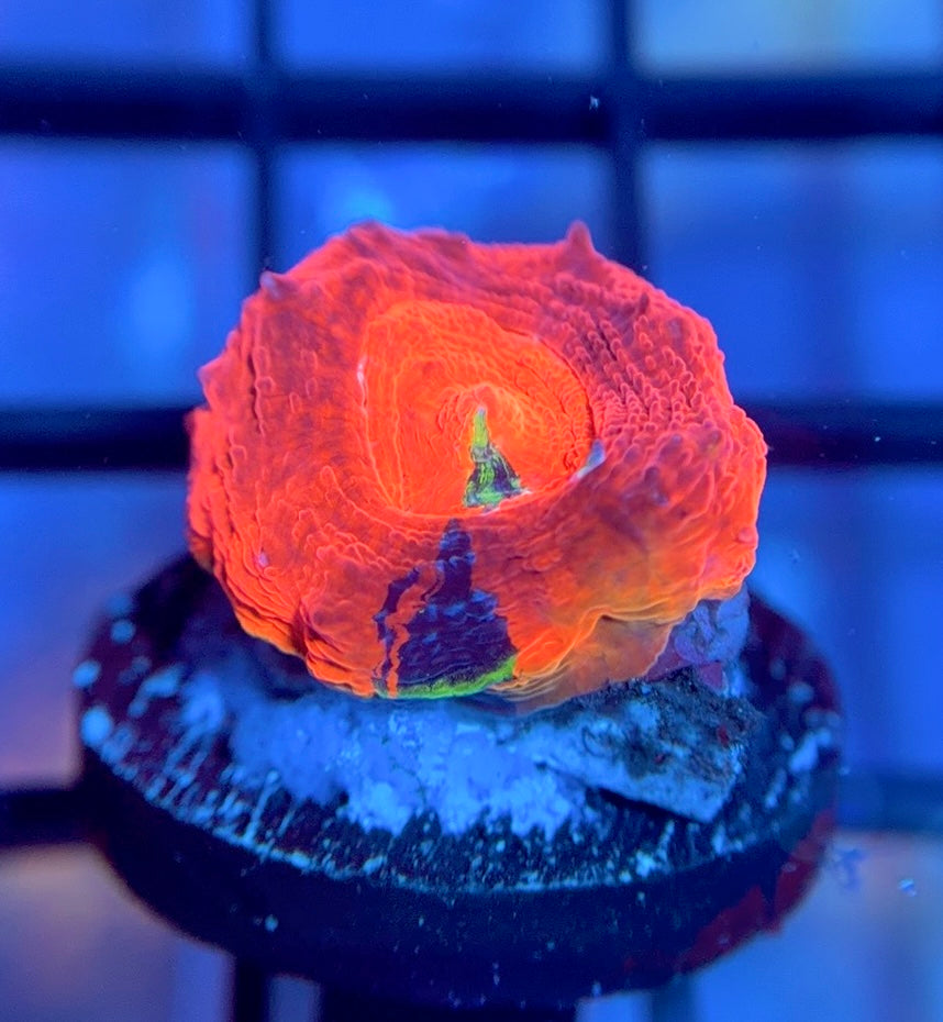 The ASD Master Blaster Bower is a very unique master bowerbanki that is mainly a dark red coloration with turquoise and purple streaks. This is an extremely rare piece, only a couple frags were released years ago. This one loves to eat! These bowers will grow faster with lots of food.