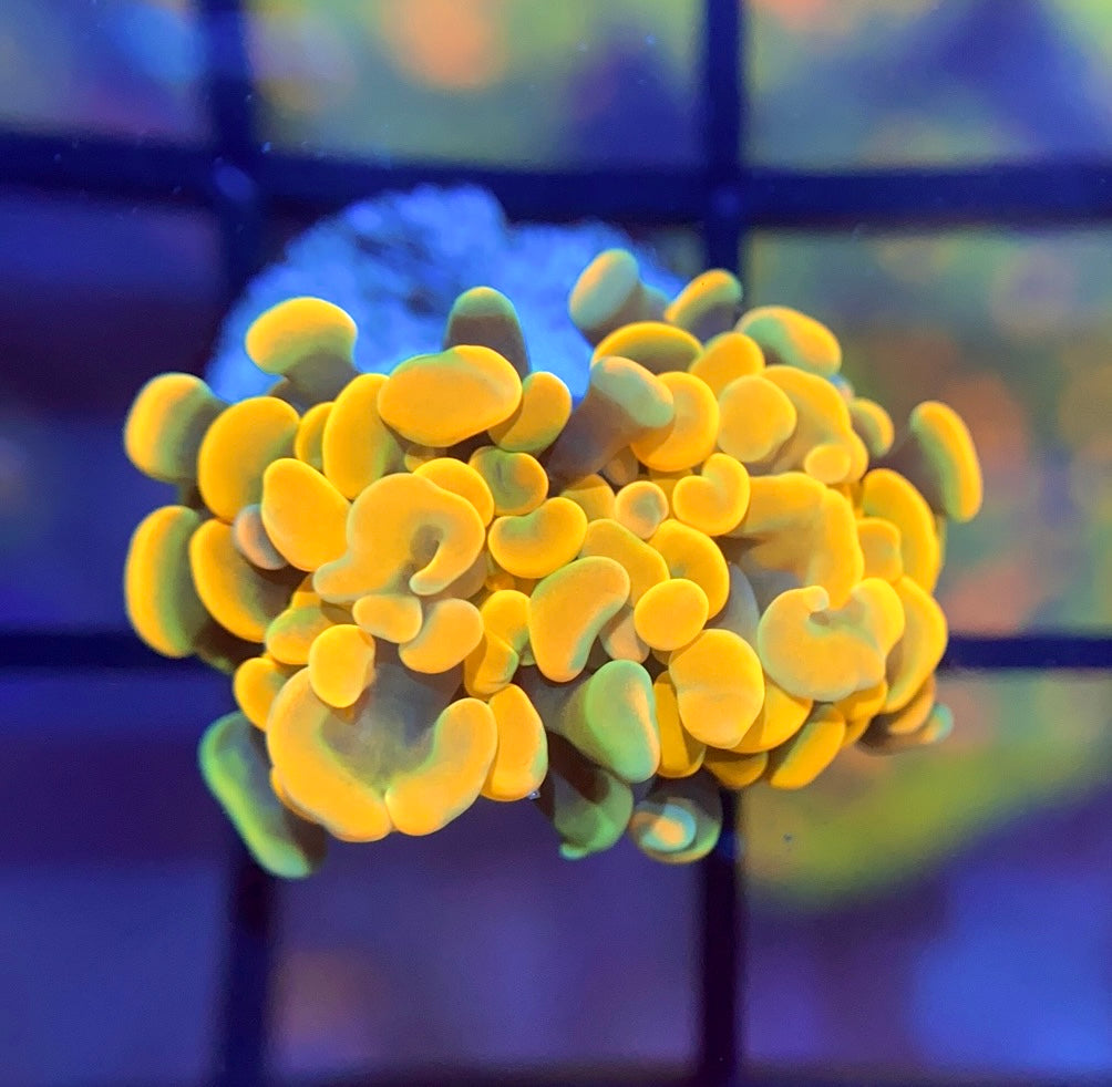 The BKCHEM Willy Wonka Hammer is the nicest hammer we have seen. This piece has bright orange tentacles with green and blue accents. This hammer also has extremely bouncy tentacles when grown in UV light.