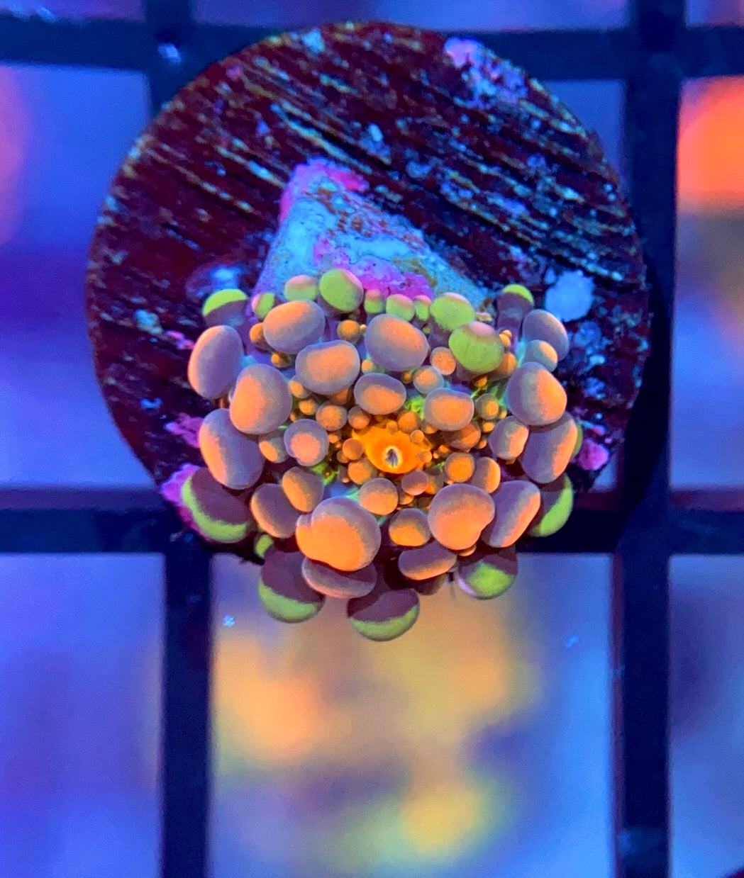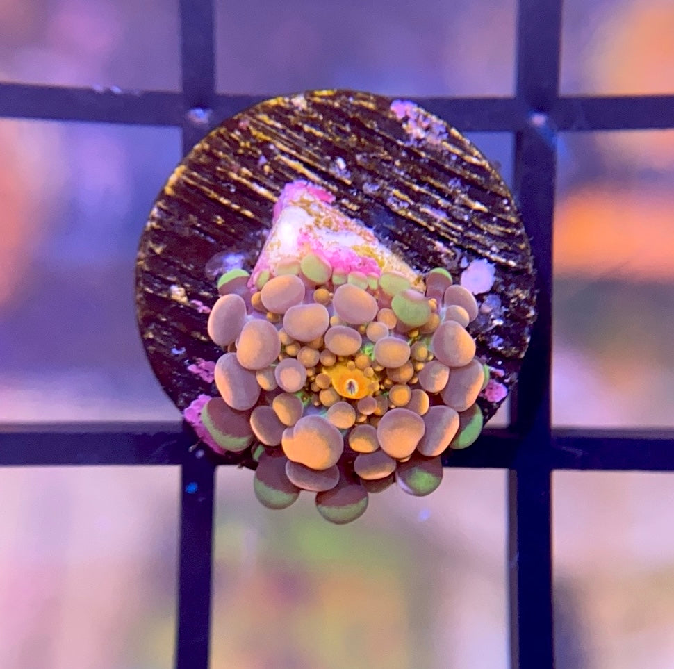 The Bloodbath Godzilla Bounce Yuma is an extremely rare high-end piece that is a dark orange/red and gets large bounces. It has a neon green base similar to the OG Godzilla Bounce. This piece is seldom offered - it is a perfect chance to get this rare coral!