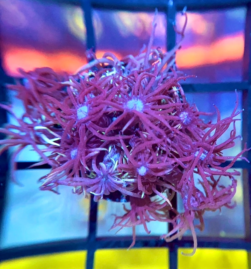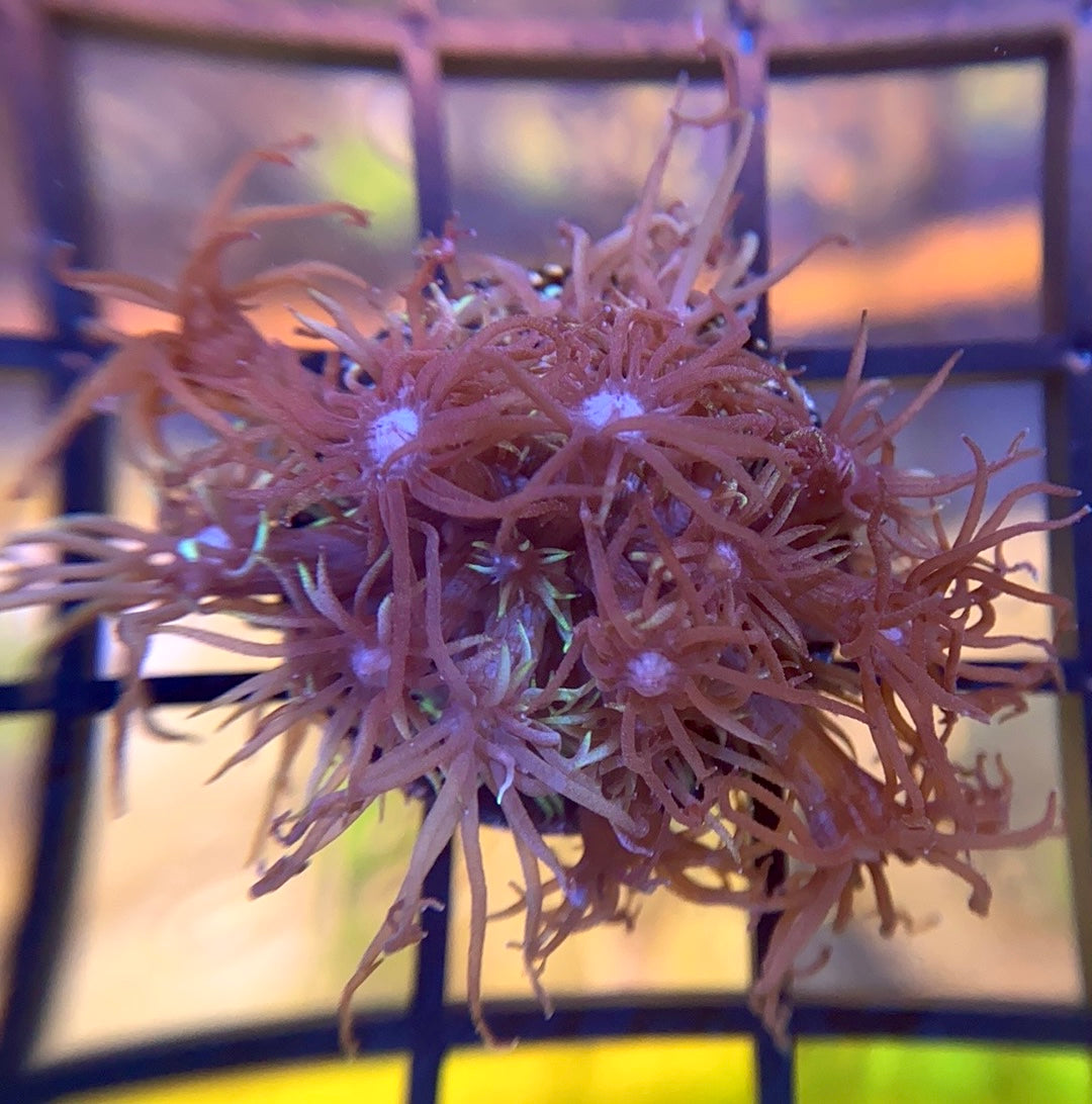 The GSC Wonderland Goni is one of the most sought after goniopora. This crazy piece has every color in the rainbow, while also being a highly desired long-lashed goni. This will be the standout in any collection.