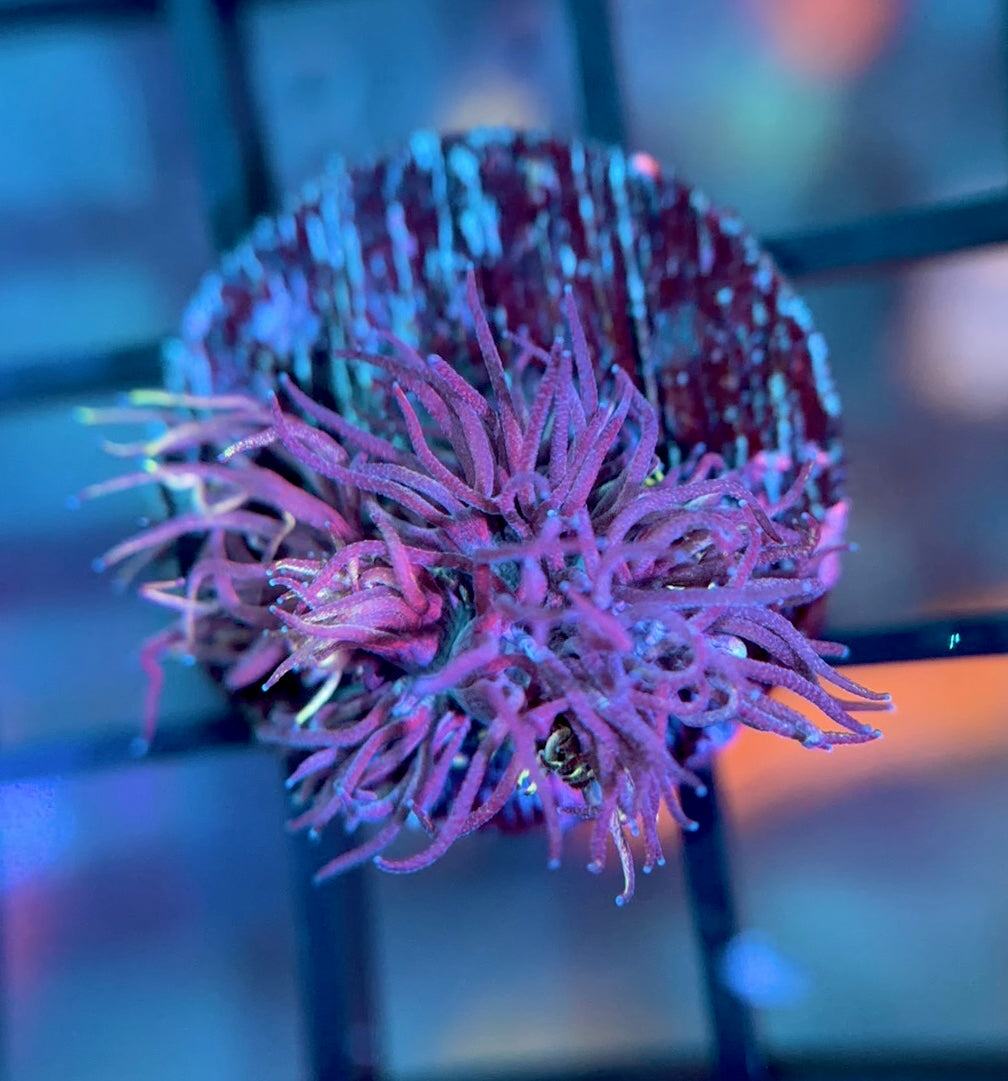 The GSC Wonderland Goni is one of the most sought after goniopora. This crazy piece has every color in the rainbow, while also being a highly desired long-lashed goni. This will be the standout in any collection.