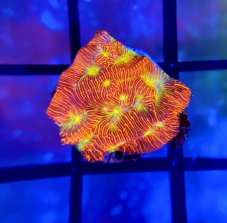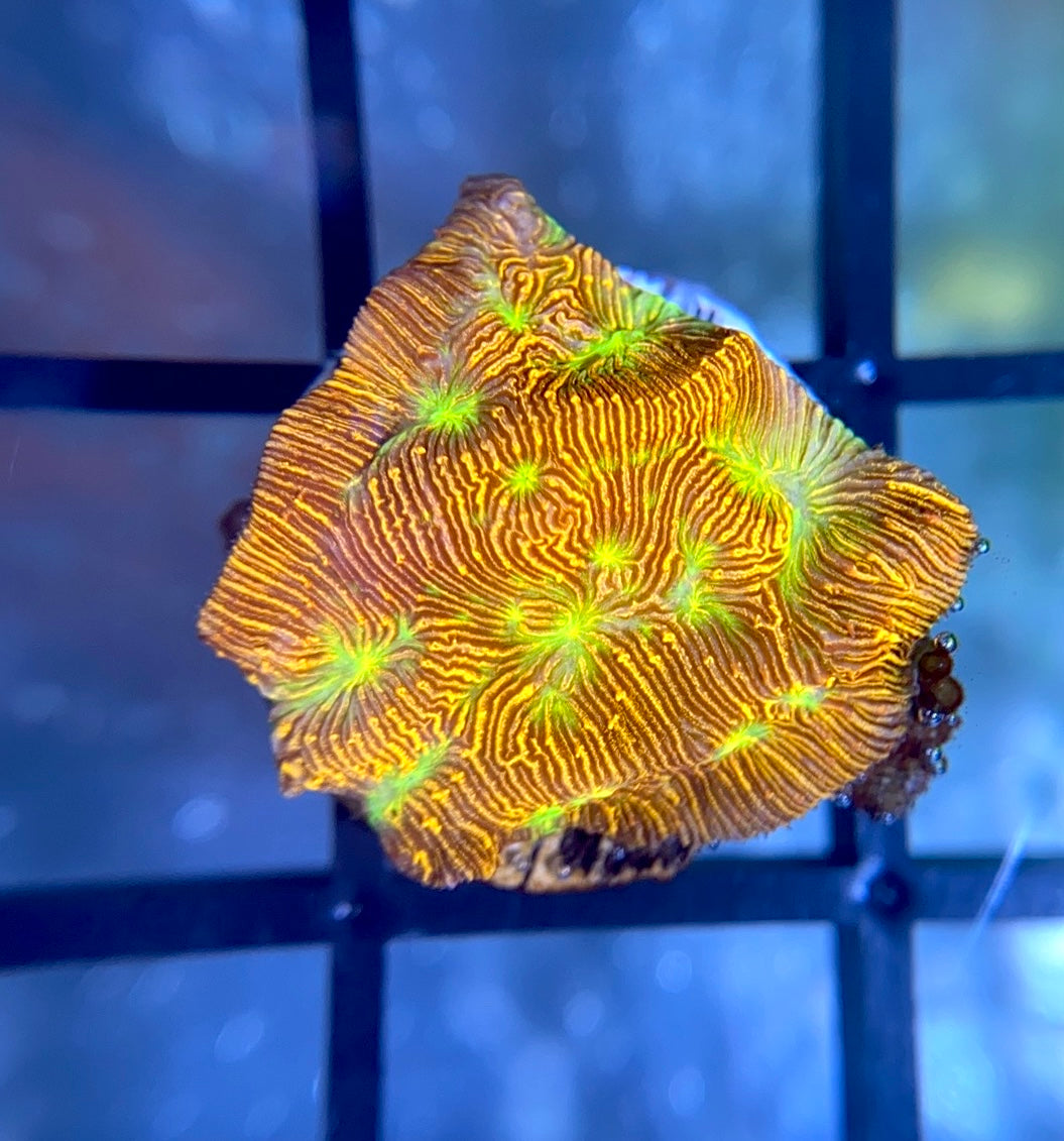 Neon orange lepto with bright green mouths. Keep separated from other corals, has a strong sting.