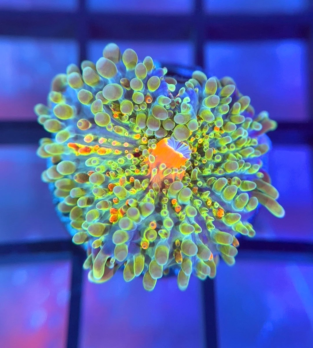 The Kiwi Sunrise Yuma is a very unique piece that has a bright green base with orange colorations throughout the coral. This is a beginner friendly yuma and is sure to brighten up your reef!