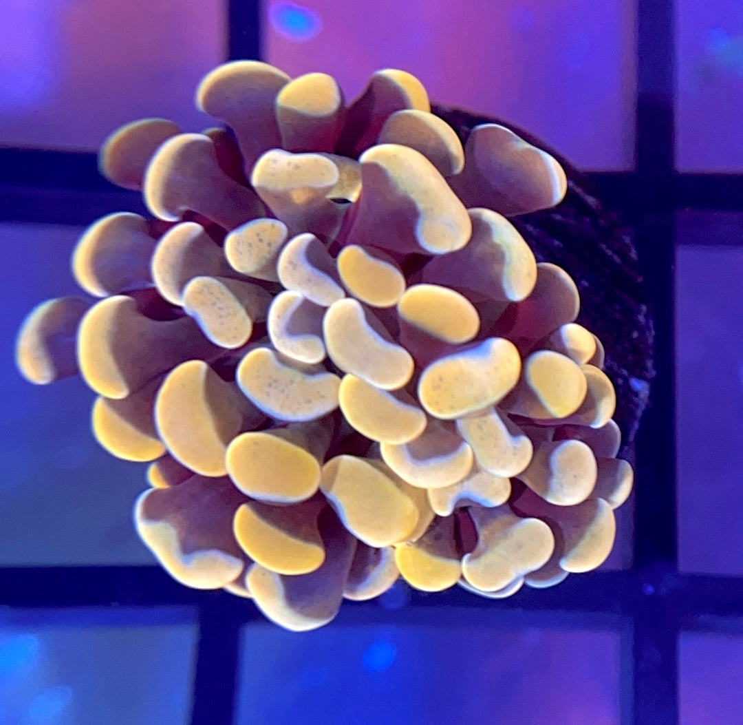 This hammer displays a soft orange color with a green undertone. It will become very bright under high light.