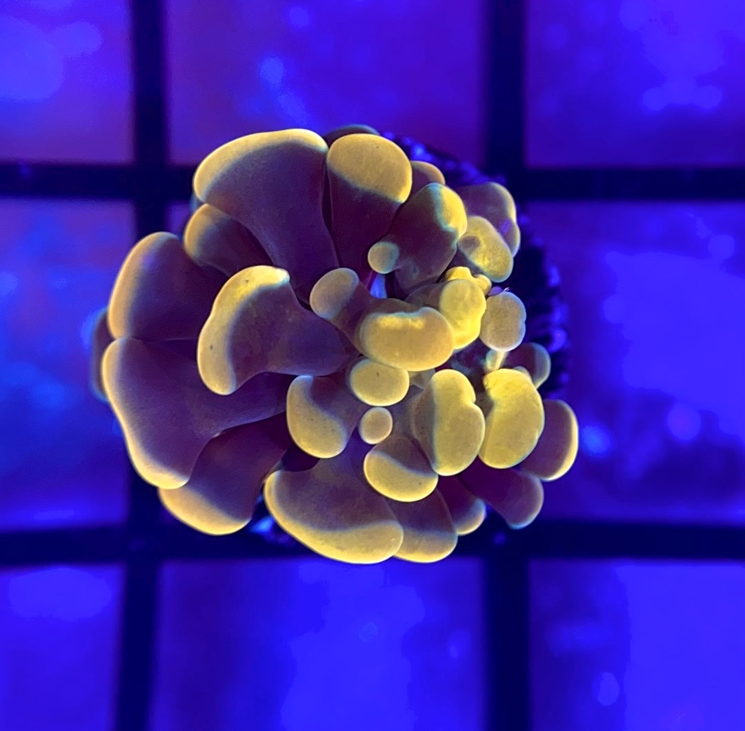 This hammer displays a soft orange color with a green undertone. It will become very bright under high light.