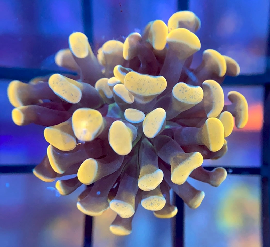 This hammer displays a soft orange color with a green undertone. It will become very bright under high light.