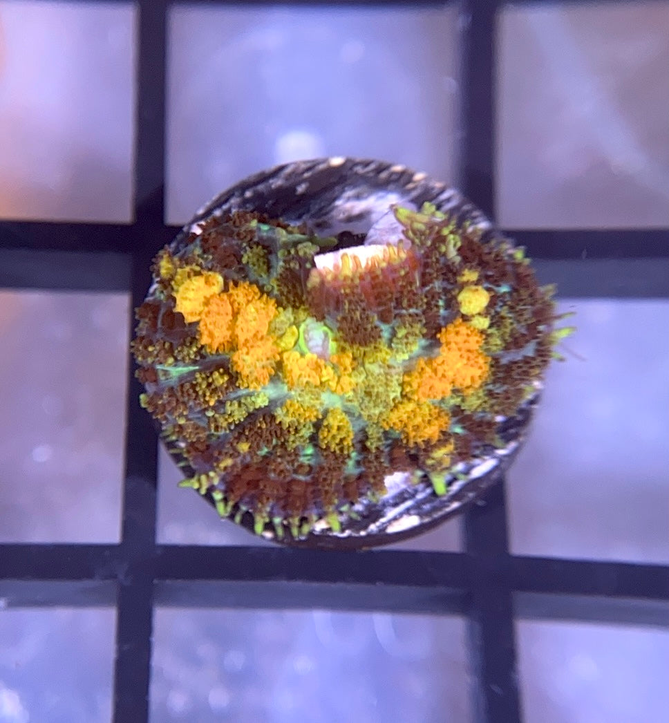 The Powerball Bounce Mushroom is one of the nicest bounce mushrooms in the hobby. This incredible rhodactis sports extremely colorful and large bounces, and various smaller bounces that pop up as well. These mushrooms do not get large, and are a fantastic addition to any collection.