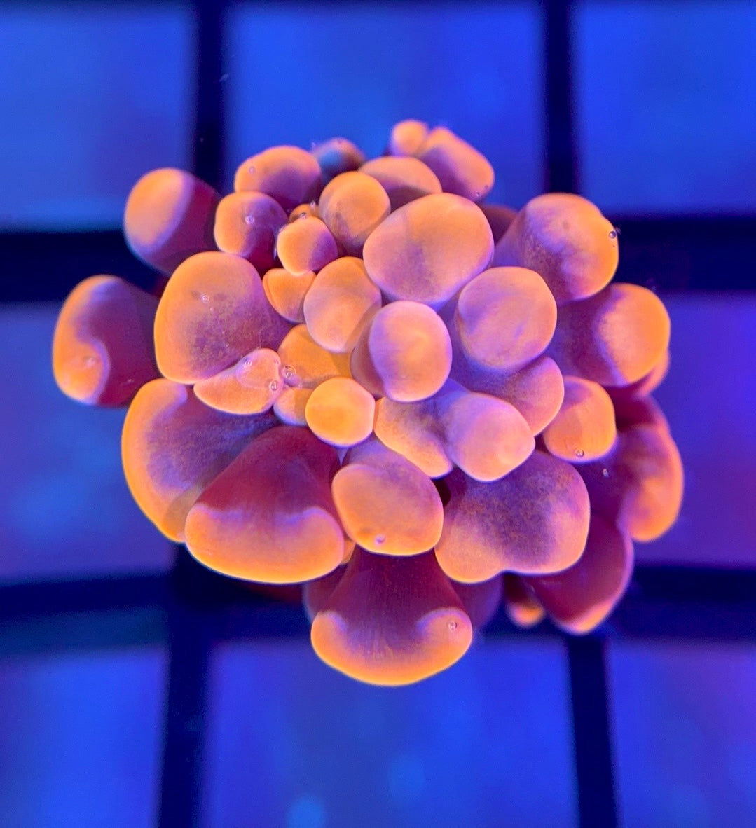 The Reef Regeneration Cinnamon Swirl is a branching hammer that is a dark orange coloration and some purple tentacles. This is a great collectors piece as it is a unique color unlike the common gold hammers.