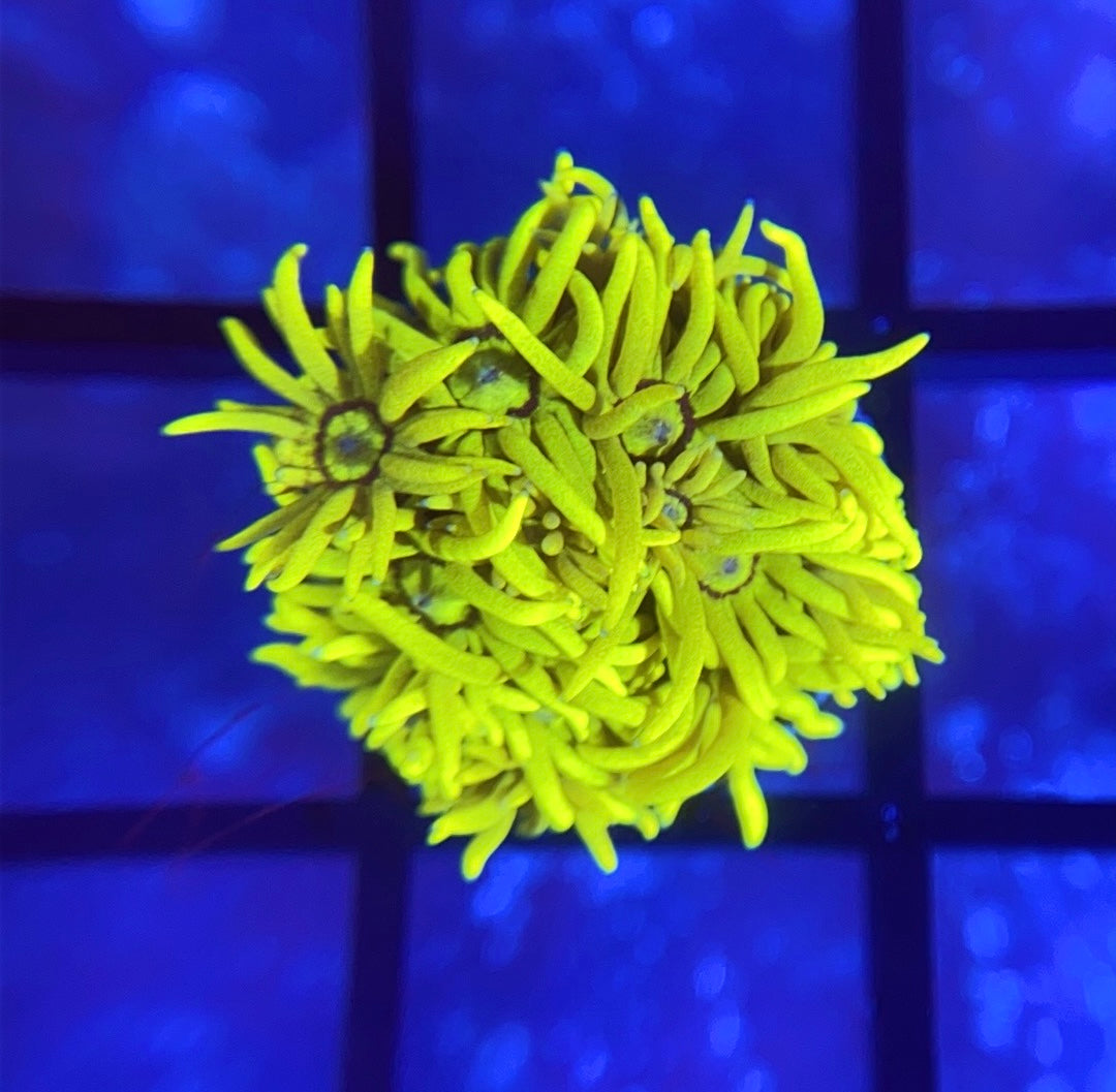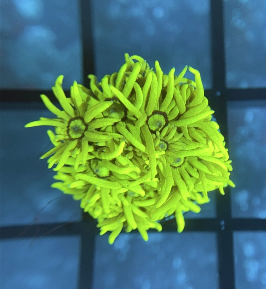 The Reef Regeneration Lemon Drop Goniopora is one of the most neon yellow/green gonis we have ever seen. This strain has excellent polyp extension and is very hardy.