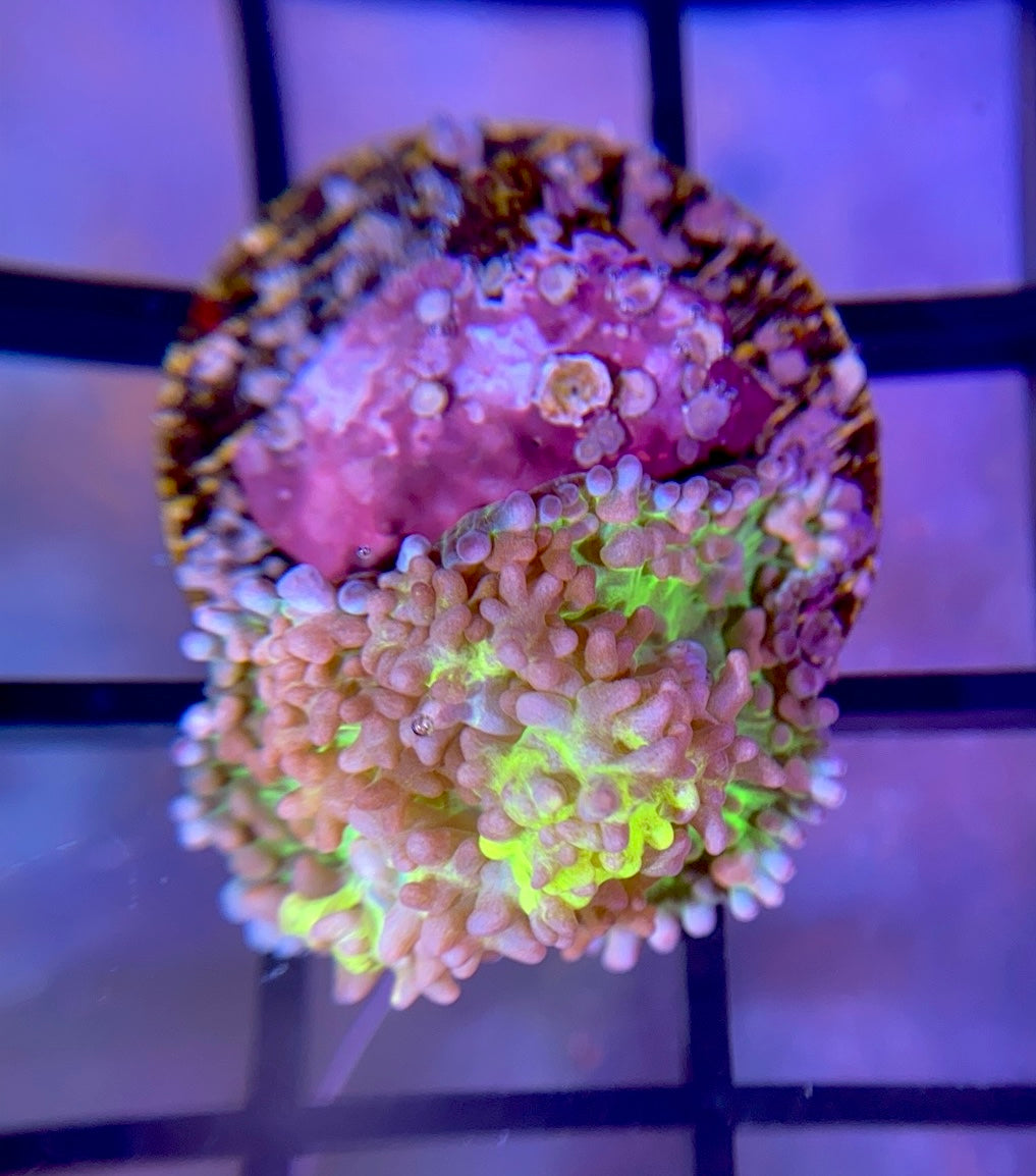 The Reef Regeneration Lemonade Bounce Mushroom is one of our favorite shrooms. This shroom gets very large, and it is a strong grower. It gets massive yellow and white bounces, and yellow streaks are present on every vesicle. This is a true collector's piece.