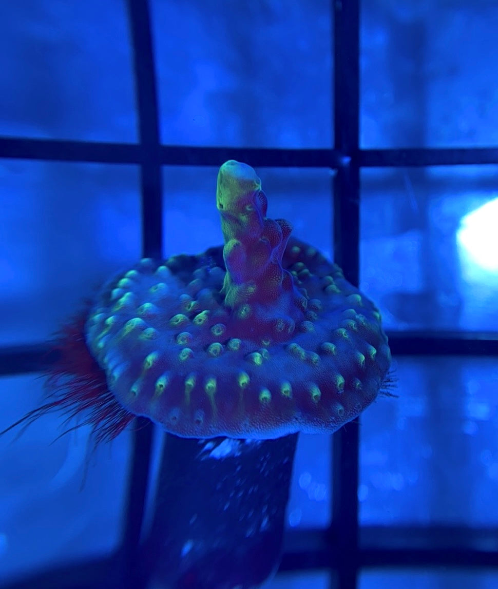 The Reef Regeneration Polar Express Acro is a dark blue acro with bright yellow tips. This amazing acro has one of the darkest blue colors out of any coral. This is a rare piece that prefers high light and high flow.