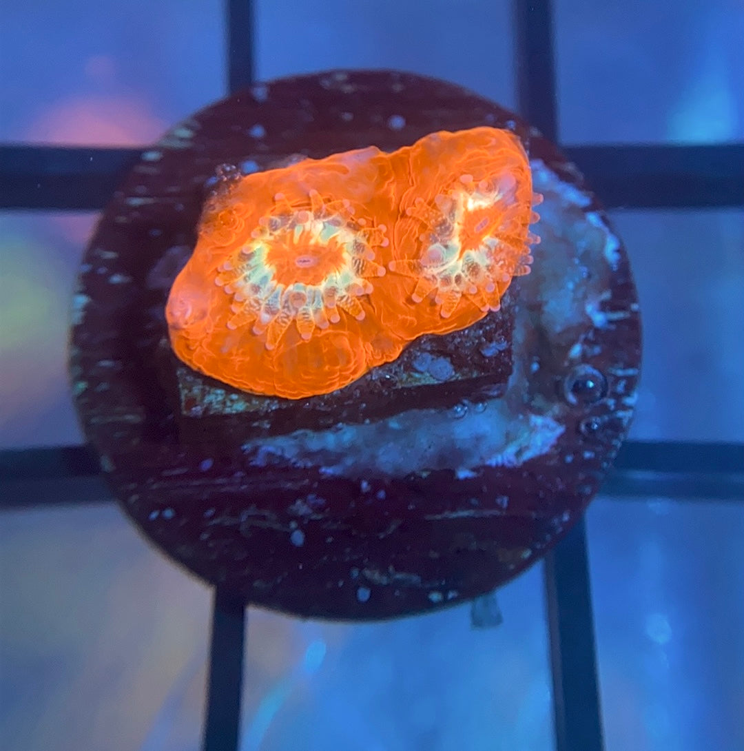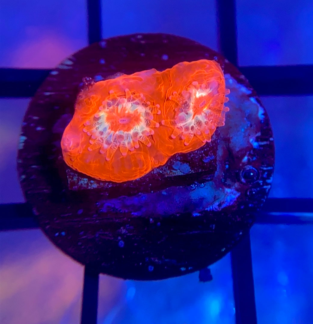 The TCK Master Bower is one of the nicest corals in the hobby. This incredible piece gets both reds and greens, and for both colors it has a dark purple ring around the mouth. This is a must have for any bower collector.